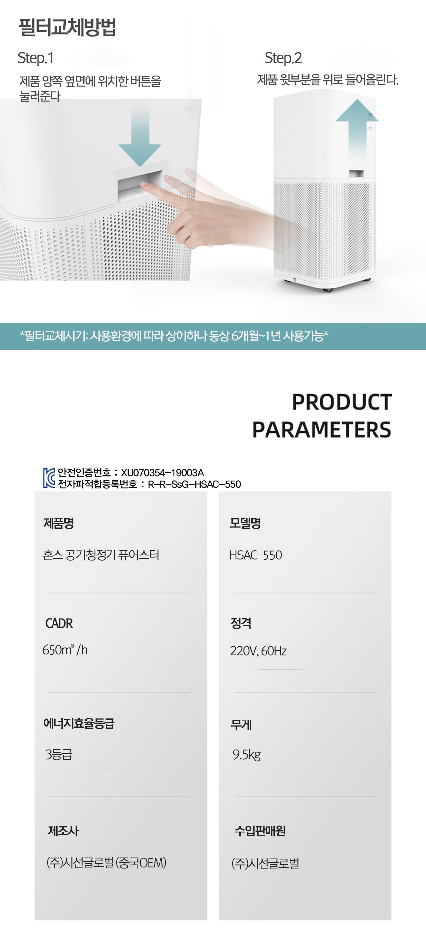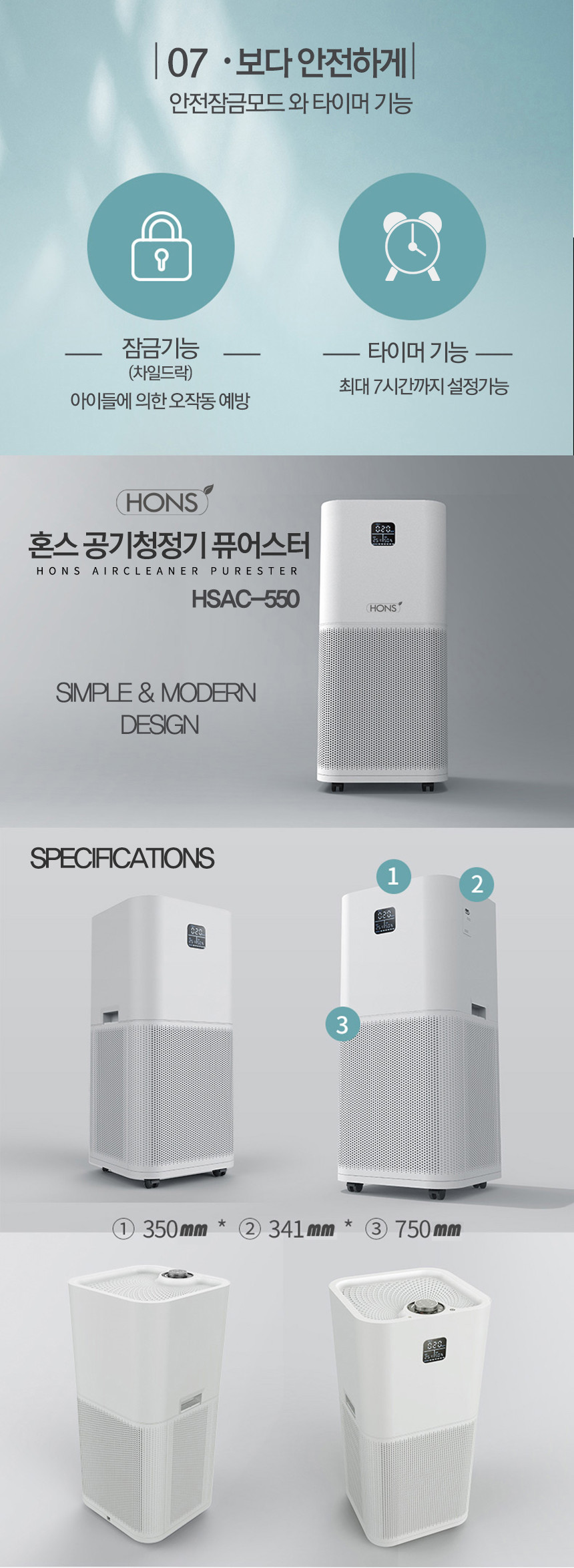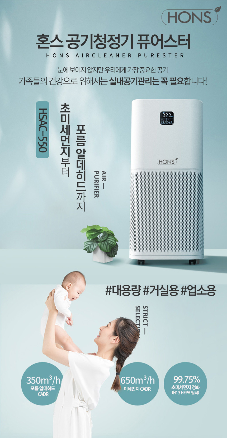 혼스 공기청정기 퓨어스터 HSAC-550, 대용량, 거실용