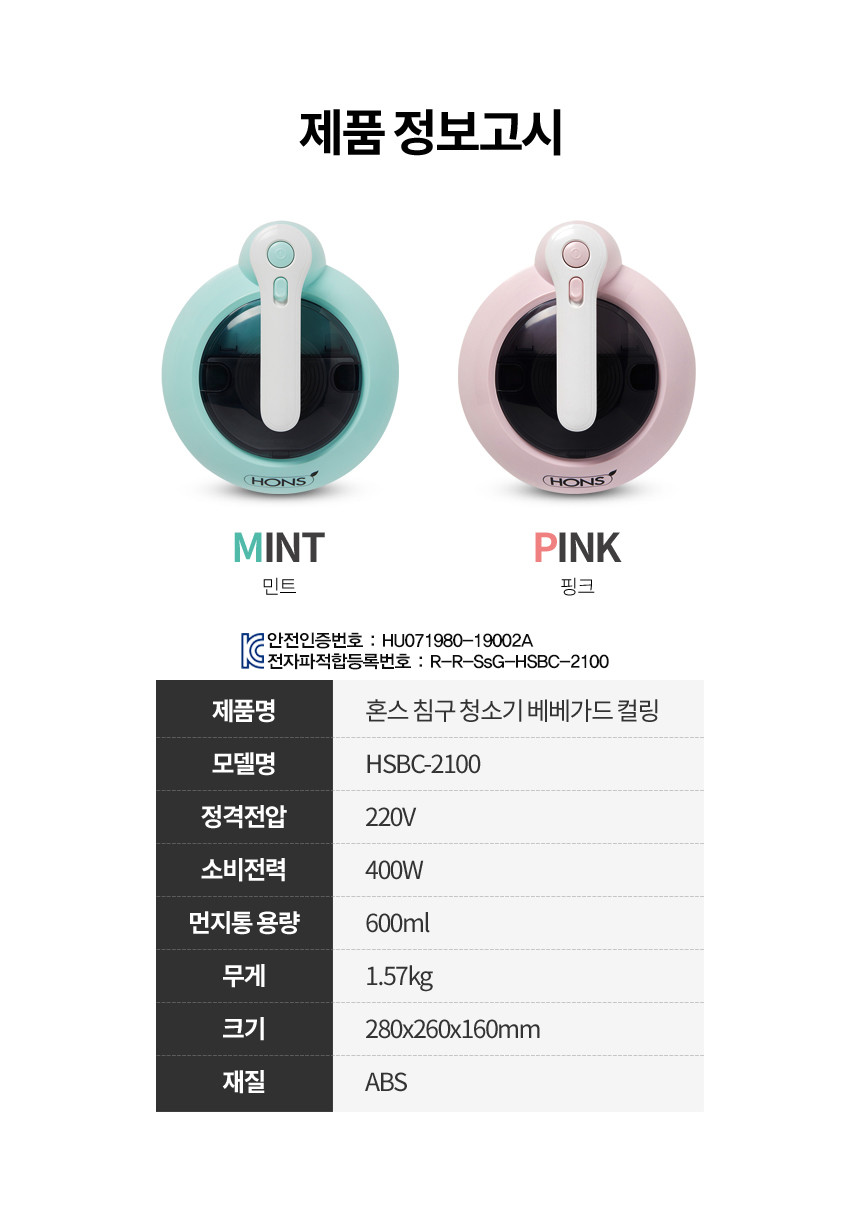 혼스 침구청소기 베베가드 컬링 HSBC-2100