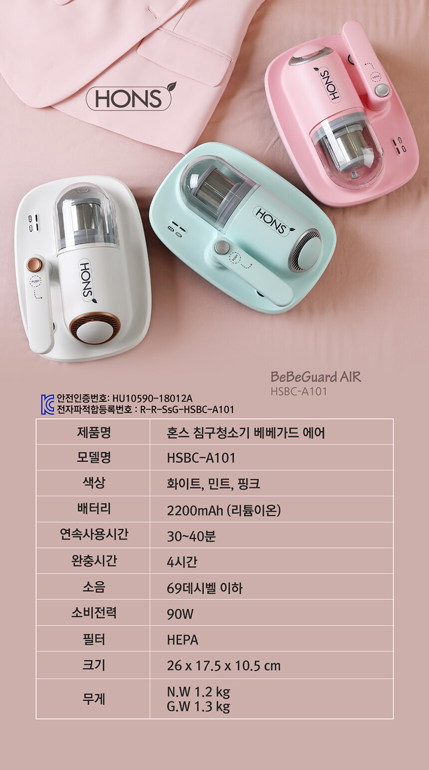 혼스 무선침구청소기 베베가드 에어 HSBC-A101