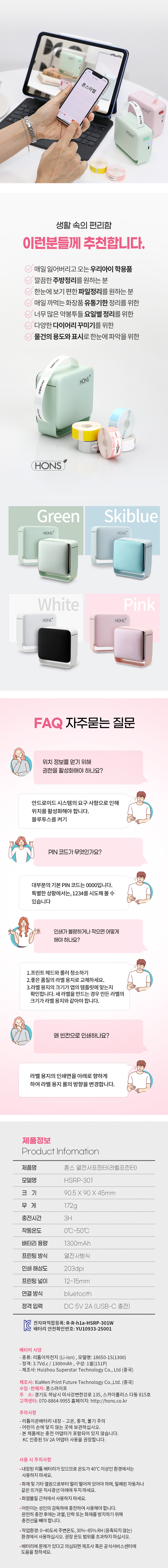 혼스 라벨프린터 네임스티커 라벨기 HSRP-301