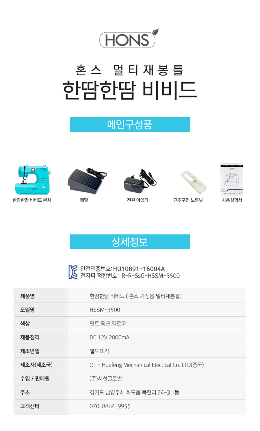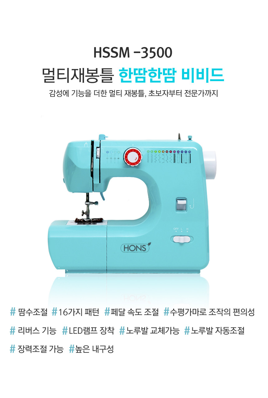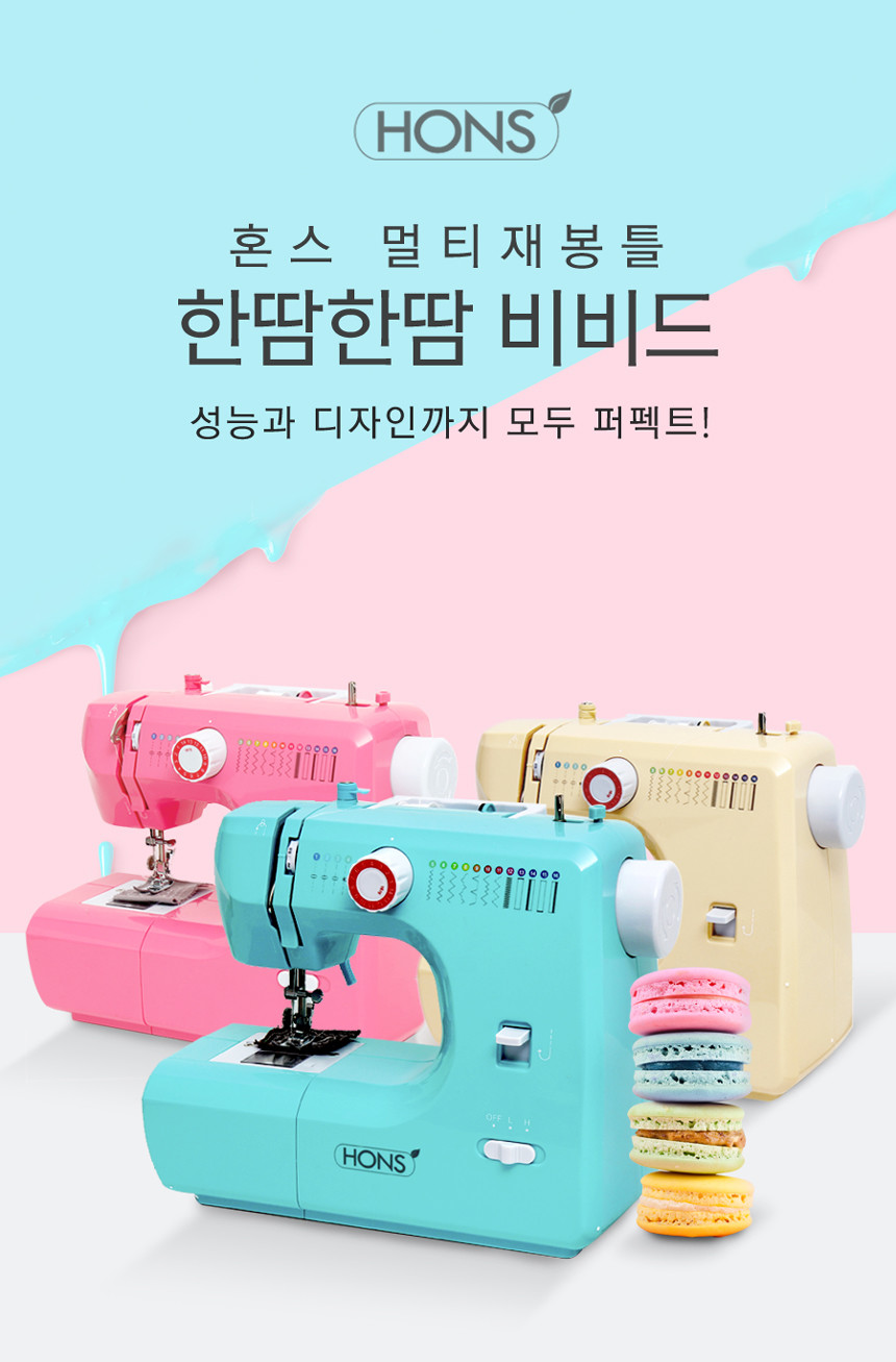 혼스 가정용 멀티 재봉틀 한땀한땀 비비드 HSSM-3500