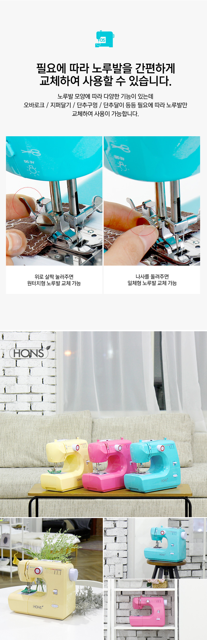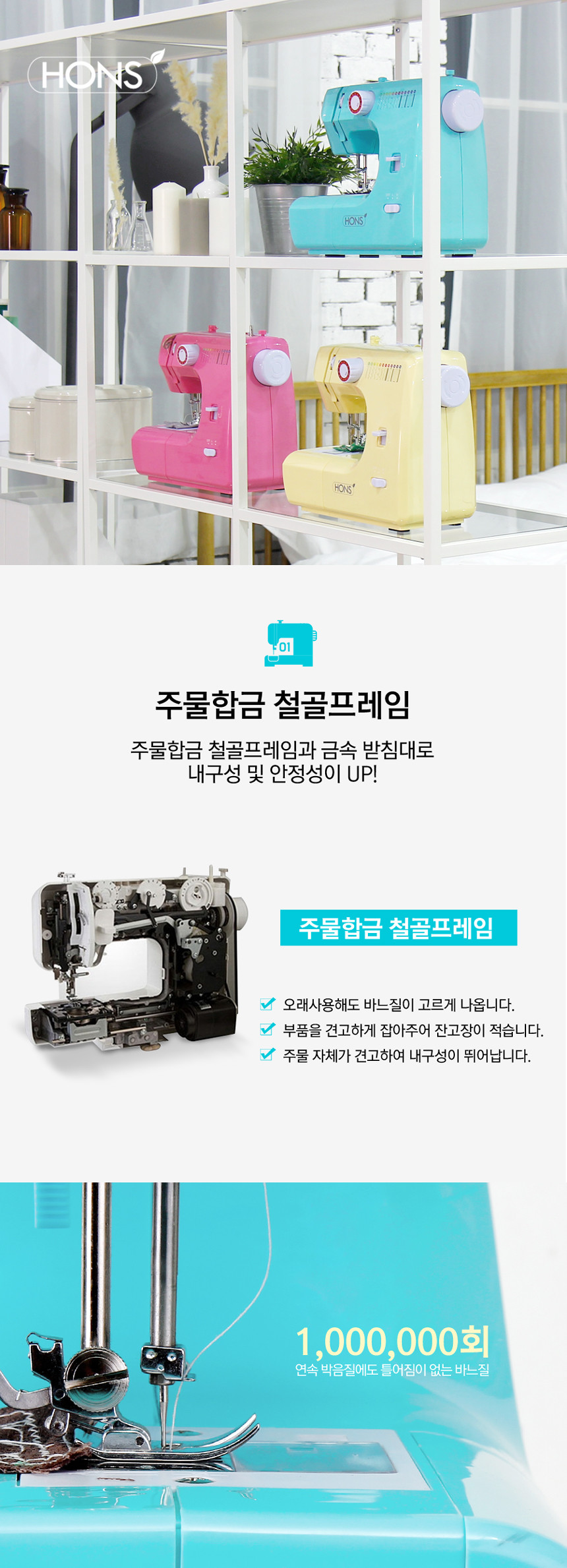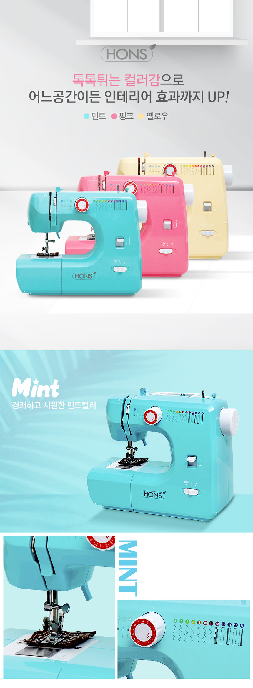 혼스 가정용 멀티 재봉틀 한땀한땀 비비드 HSSM-3500