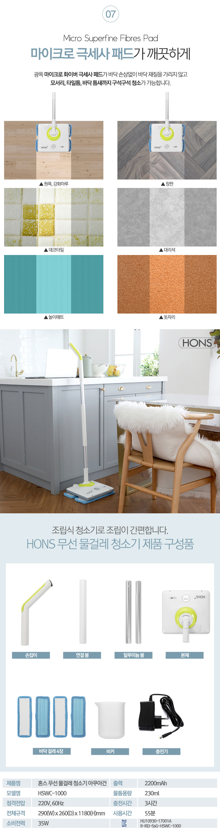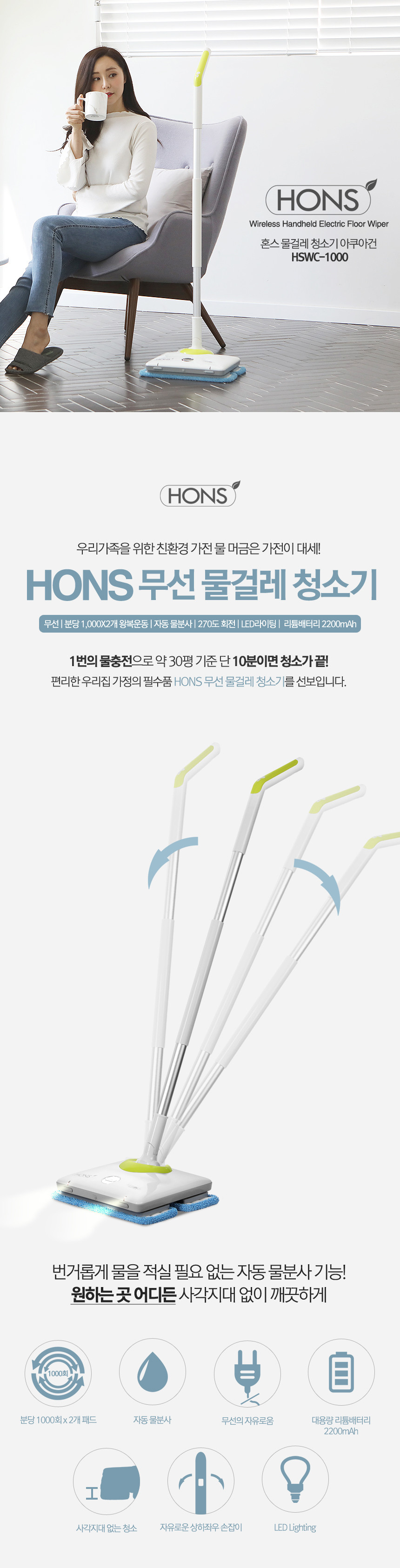 혼스 무선물걸레 청소기 아쿠아건 HSWC-1000