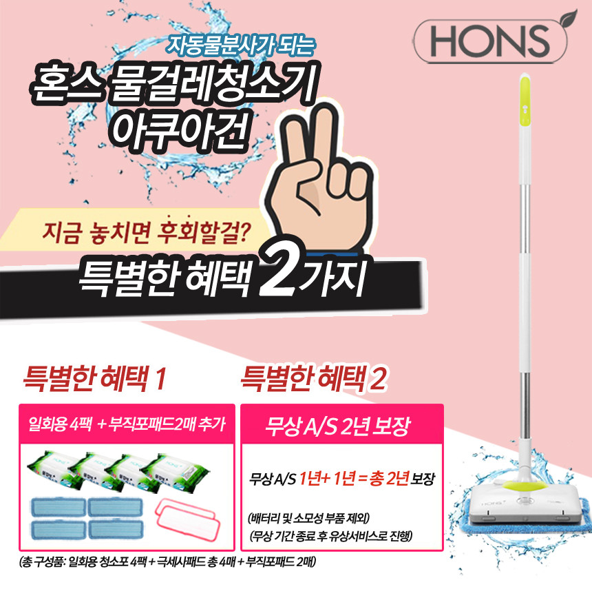 혼스 물걸레청소기+1회용청소포 25매 (4팩)+부직포패드 (품절)
